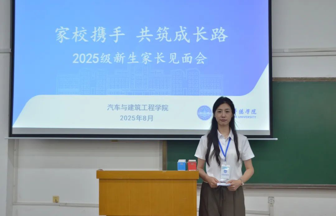 为构建家校协同育人格局,凝聚共育合力,助力2025级新生顺利适应大学生活。8月23日,汽车与建筑工程学院于教二201教室组织召开2025级新生家长见面会。会议以“家校携手,共筑成长路”为主题,学院副院长(主持工作)宁士君、副院长刘玉丁、学生发展中心主任李琳琳、副主任王奕达及2025级新生辅导员共同出席。会议由2025级新生辅导员王铁男主持。