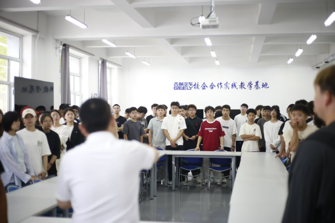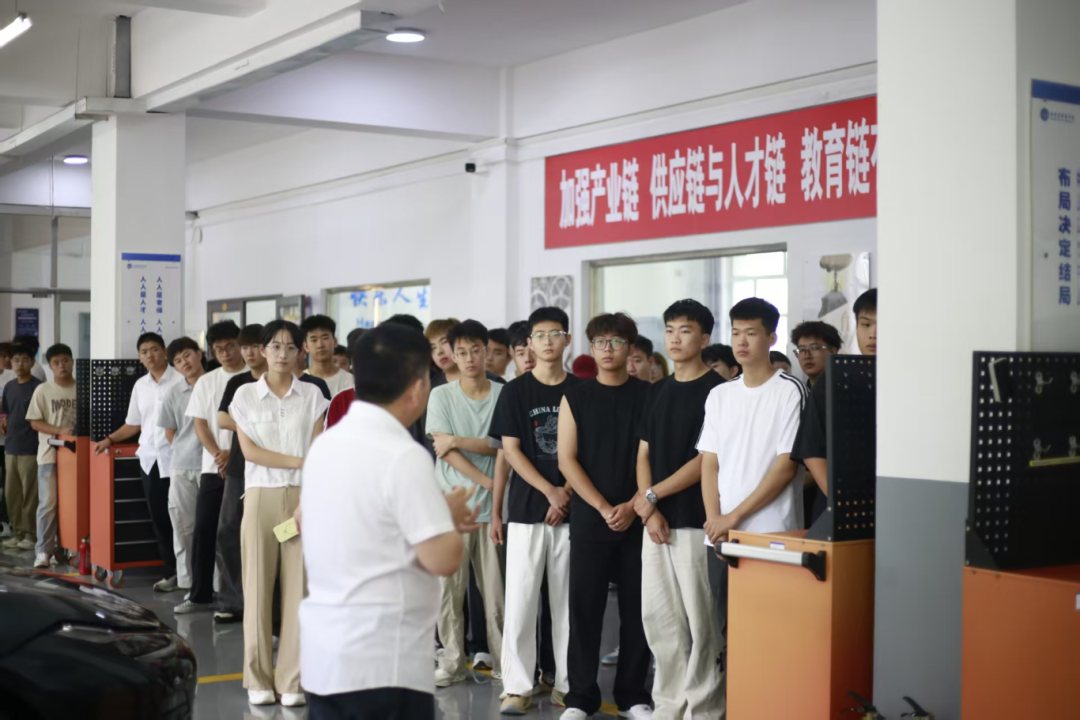 于洪超老师带领车辆工程、新能源汽车工程、交通运输等专业的学生走进汽车构造与原理展示区,从发动机的精密结构,到底盘的传动系统,再到车身的设计逻辑,均成为同学们关注的焦点。于老师依托实物,系统讲解各部件的功能与运行机制,将抽象理论转化为具象认知,不仅解答了新生的疑问,更激发了同学们对汽车领域的深入探索兴趣。