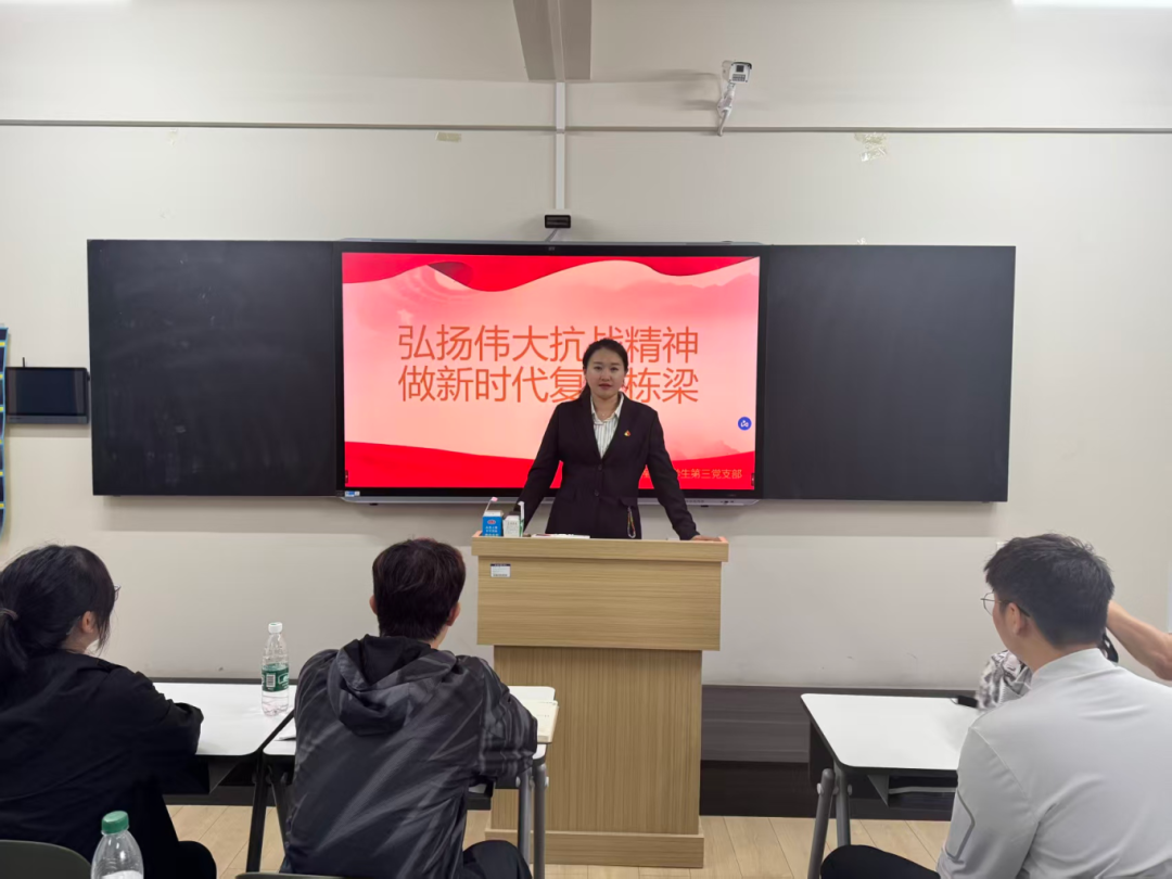 9月23日,学生第三党支部在支部书记周金萍老师带领下,组织开展集体理论学习,重点围绕党的光辉历程与伟大抗战精神等内容进行深入研讨。通过学习交流,全体党员进一步深刻领悟了以“坚持真理、坚守理想,践行初心、担当使命,不怕牺牲、英勇斗争,对党忠诚、不负人民”为核心的伟大建党精神,以及以“爱国情怀、民族气节、英雄气概和必胜信念”为内涵的伟大抗战精神,切实筑牢信仰根基、补足精神之钙、把稳思想之舵。