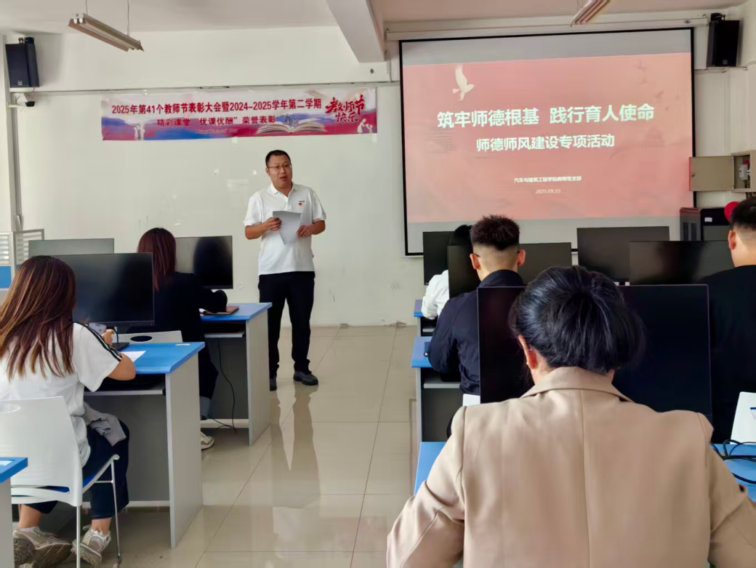 9月23日,汽车与建筑工程学院教师党支部结合习近平总书记关于“四有”好老师的重要指示精神,组织开展师德师风建设专项行动。在专题学习环节,支部书记周航领学习近平总书记关于教师队伍建设的重要论述,结合《新时代高校教师职业行为十项准则》开展案例研讨。与会党员围绕廉政风险点深入交流,通过情景模拟剖析实际问题,形成12项《师德风险防控清单》。在实践环节,党支部组织全体教师党员签署师德承诺书,支部书记周航明确将承诺履行情况纳入年度民主评议考核,实现师德建设从软性要求向硬性约束转变。下一步,支部将建立师德档案跟踪机制,持续巩固建设成效,切实筑牢“为党育人、为国育才”的思想根基。