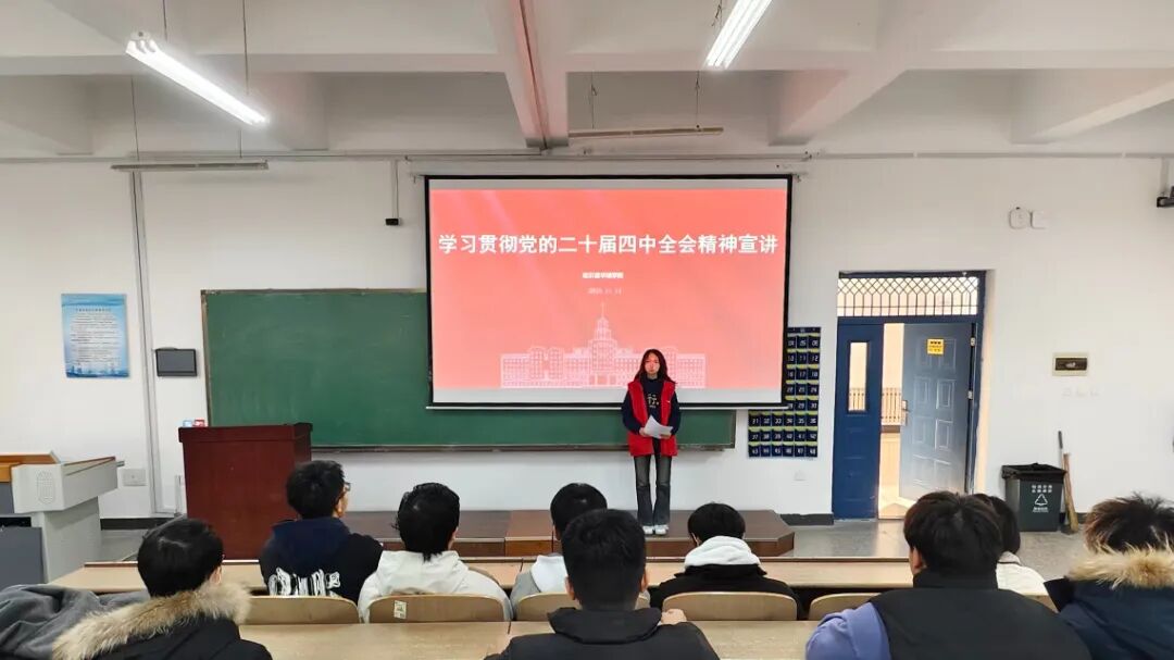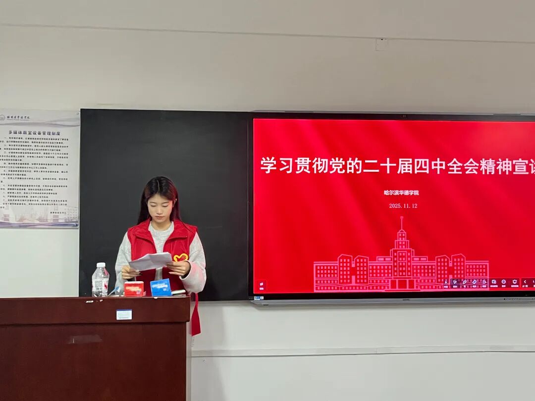 近日,哈尔滨华德学院“新时代先锋”宣讲团开展党的二十届四中全会精神系列宣讲活动。11月10日至14日,首轮宣讲成功走进全校五个学院的11个班级,覆盖300余名青年学子,在校园内掀起学习热潮。