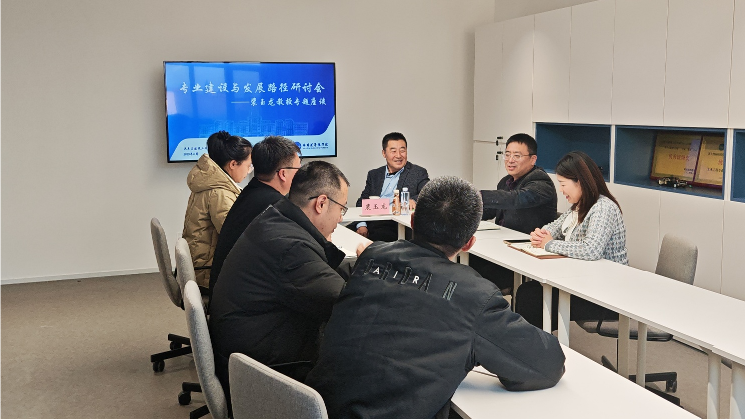 讲座结束后,裴教授与汽车与建筑工程学院领导班子举行了专题座谈会。会上,双方围绕新形势下汽车类、土木类等相关专业的建设思路、人才培养方案的优化方向、课程体系的改革重点、实践教学能力的提升等核心议题,进行了深入、务实的交流。裴教授结合东北林业大学的成功经验与自身研究体会,为我院的专业优化与人才培养质量提升提供了宝贵的指导性意见。